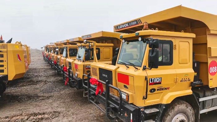 配套投入的60台雷沃LT110H矿卡,主打大吨位、高效率转运,搭载潍柴WP14T发动机,爬坡、起步性能优异,整车底盘坚固、承载能力出众,同时兼顾燃油经济性与维护便捷性,配合雷沃FR750F挖掘机高效装车,大幅提升整体土石方转运效率。